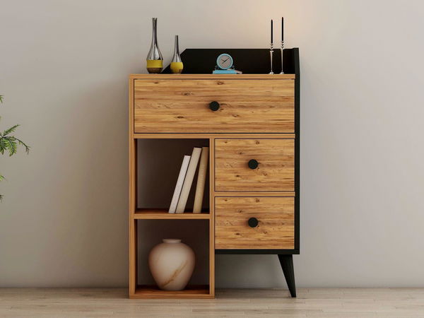 Komód Dekube 3 (atlanti fenyő + fekete)