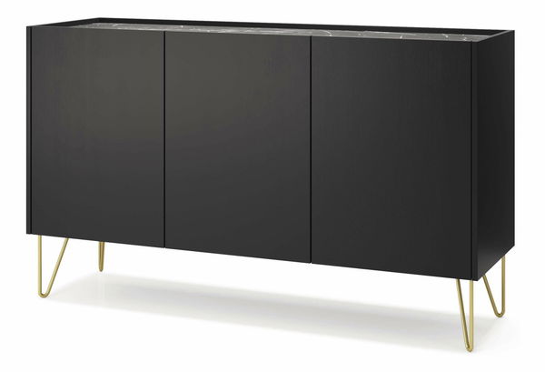 Komód Harvest K144 (fekete grafit + black royal márvány + arany)