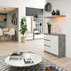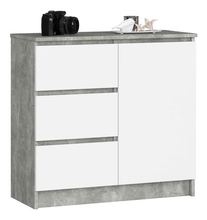Kis fiókos szekrény, könnyen összeszerelhető, fiókok és ajtók fogantyú nélkül.