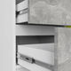 Kis fiókos szekrény, könnyen összeszerelhető, fiókok és ajtók fogantyú nélkül.