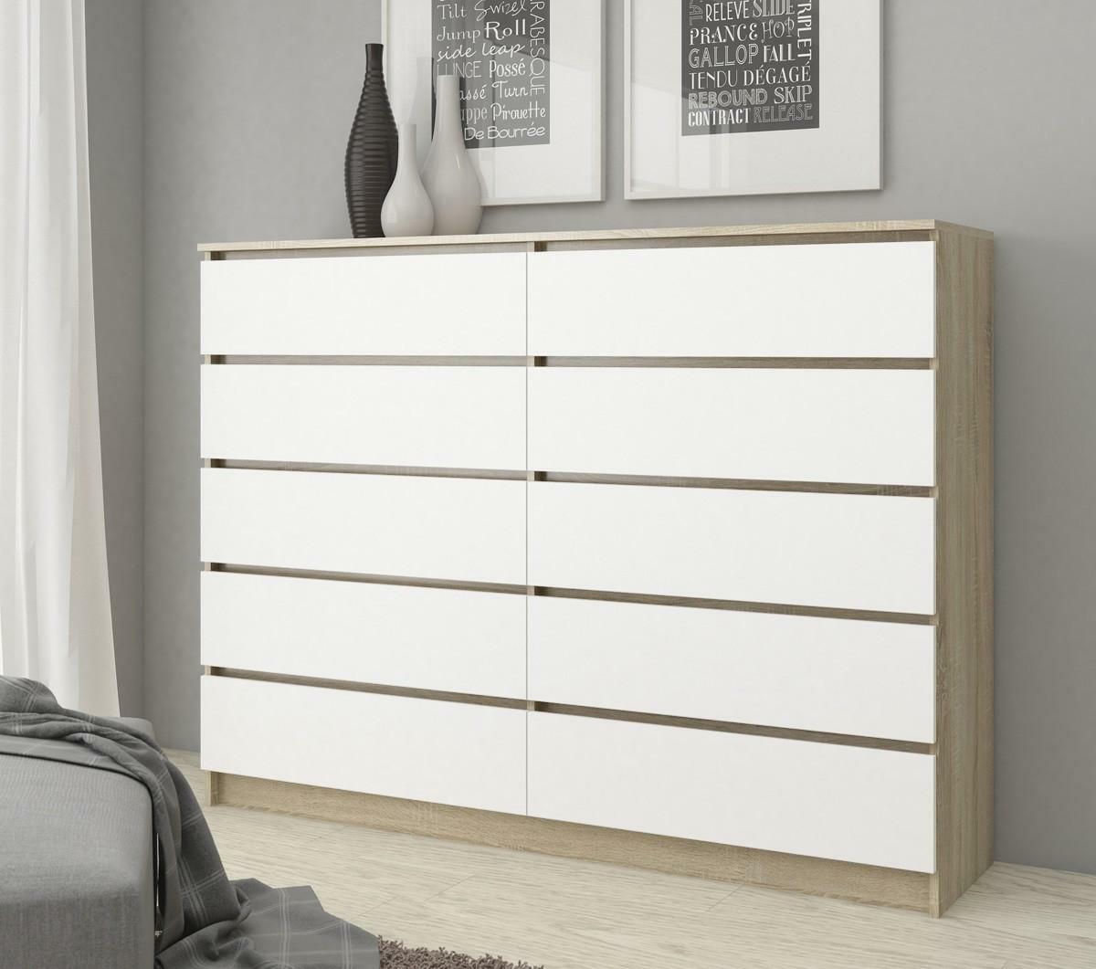 Komód Kurtinaitis 10SZ (sonoma tölgy + fehér)