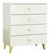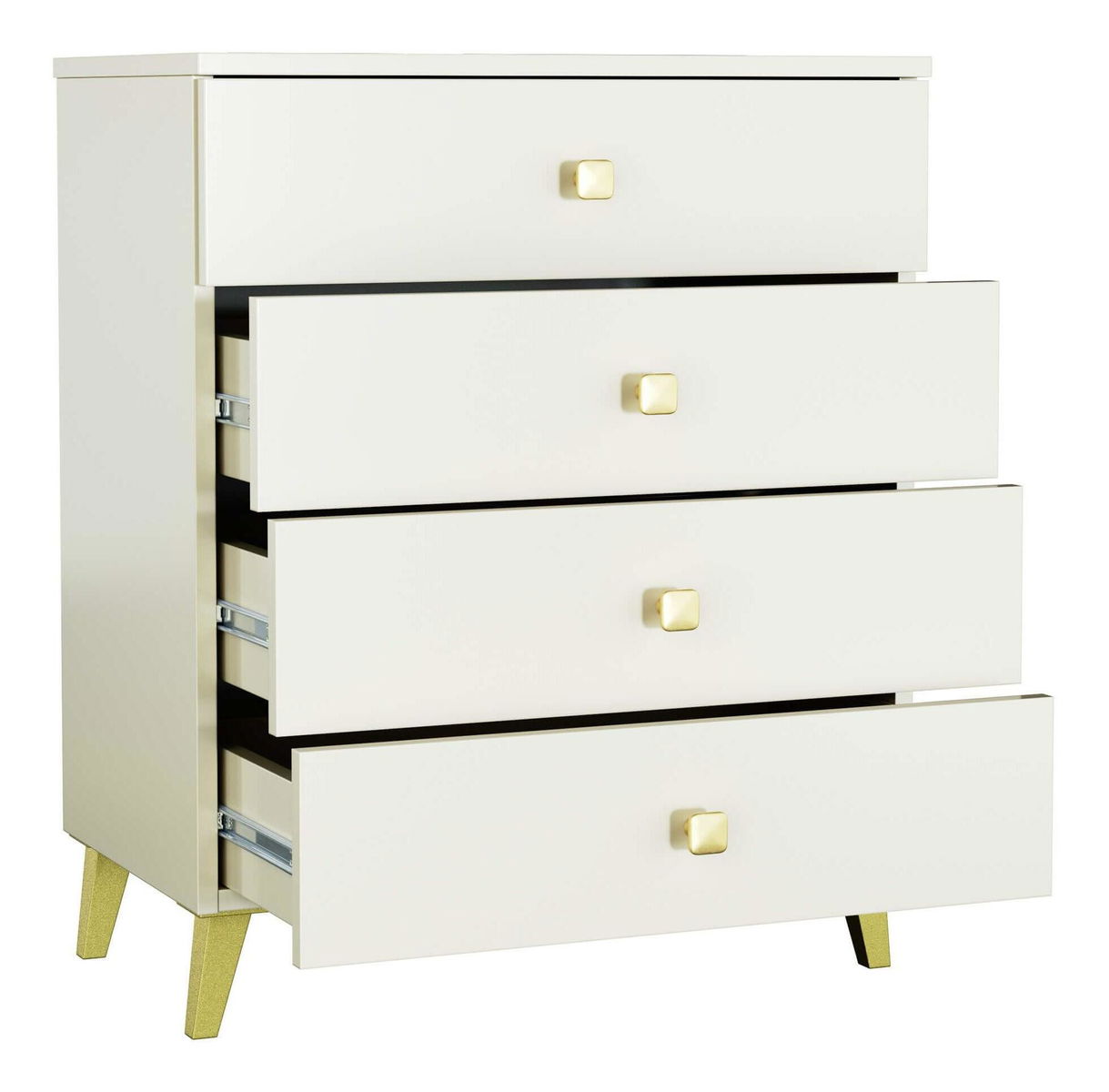 MutasdA Mobian 4 komód egy elegáns és funkcionális bútor, amely ideális a modern belső terekbe. Kiváló minőségű laminált ABS lemezből készült, hosszú élettartamra tervezték. Az arany lábak és fogantyúk fényűző megjelenést kölcsönöznek a komódnak, amely felkelti a figyelmet. Négy tágas, 51,5 cm széles és 35 cm mély fiókkal rendelkezik, amelyek bőséges tárolóhelyet biztosítanak. A fiókok zárhatóak, ami biztosítja a tárolt tárgyak biztonságát. A komód 78 x 50 x 13,5 cm méretű és 22,8 kg tömegű kompakt csomagolásba van csomagolva, amely lehetővé teszi a könnyű hordozhatóságot és összeszerelést.