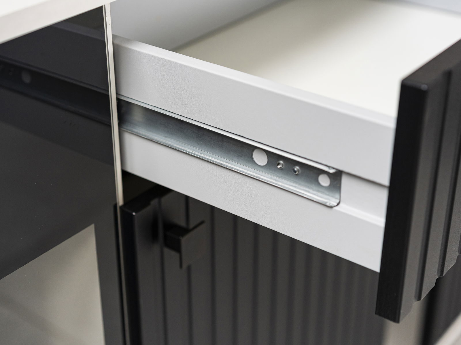 Laminált lemez (15 mm) (melamin) + Hátlap: fekete HDF (2,5 mm)