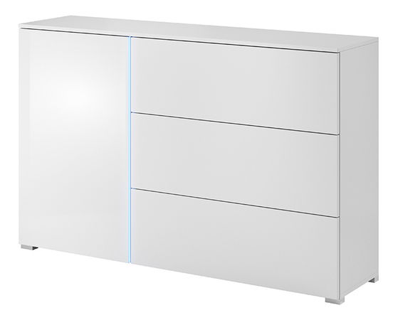 Kétrészes komód, melynek egyik oldala hozzávásárolható LED világítással kapható, másoldalt három fiók található elegendő tárhellyel.