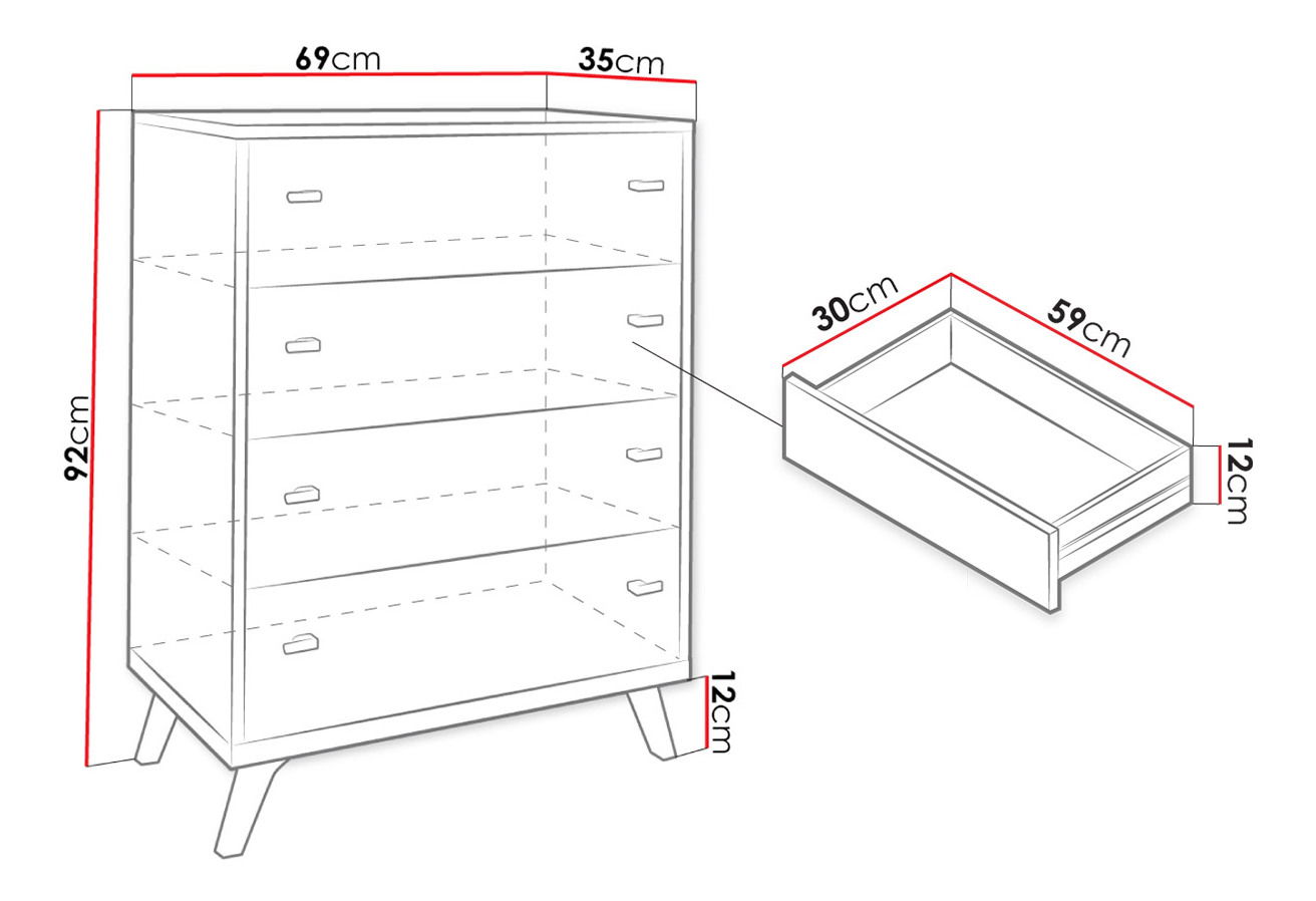 Komód Talbergia TN03 K4SZ (fehér + fehér + arany craft tölgy)