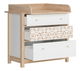 A Timon kollekció praktikus fa komódja pelenkázóasztallal a még nagyobb biztonság érdekében falakkal rendelkezik. A komód 3 fiókot tartalmaz a tároláshoz. A Timon kollekció a meleg fa és a fehér kellemes kombinációjának köszönhetően kényelmes légkört biztosít a család legkisebb tagjai számára.