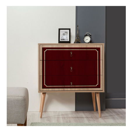 Vastagság: 18 mm. Gyertyán lábak.. Fém fogantyúk. UV bevonat. Szélesség: 80 cm. Magasság: 90 cm. Mélység: 40 cm. Fiók magassága: 18,5 cm. Lábak magassága: 30 cm