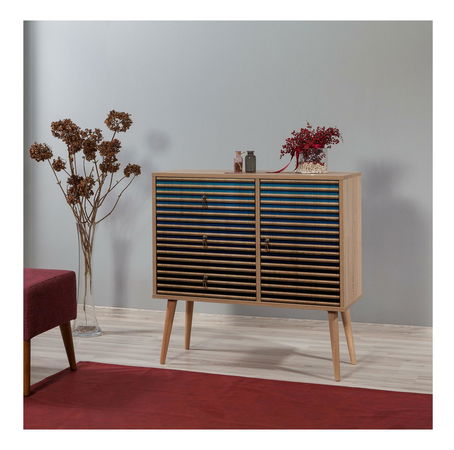 Vastagság: 18 mm. Gyertyán lábak. Fém fogantyúk. UV bevonat. Szélesség: 90 cm. Magasság: 90 cm. Mélység: 40 cm. Fiók méretei: Szélesség: 49 cm. Magasság: 18,5 cm. Polc magassága: 27,5 cm. Lábak magassága : 30 cm