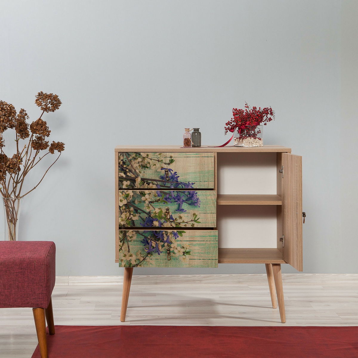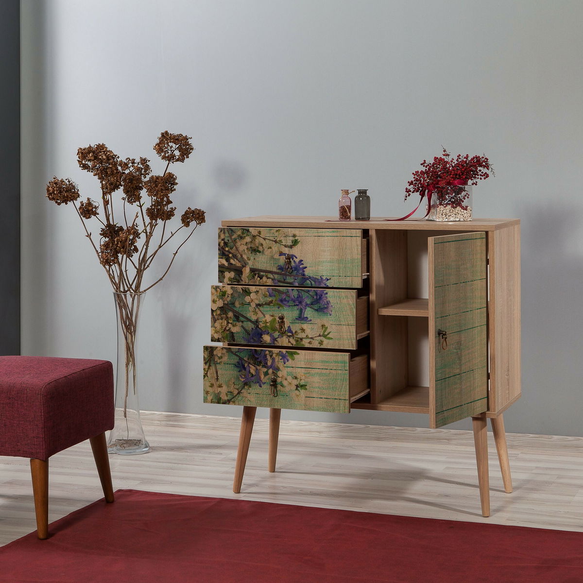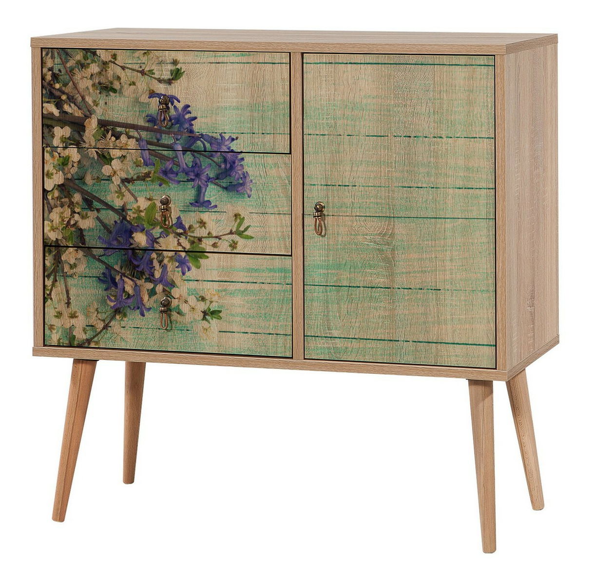 Vastagság: 18 mm. Gyertyán lábak. Fém fogantyúk. UV bevonat. Szélesség: 90 cm. Magasság: 90 cm. Mélység: 40 cm. Fiók méretei: Szélesség: 49 cm. Magasság: 18,5 cm. Polc magassága: 27,5 cm. Lábak magassága : 30 cm