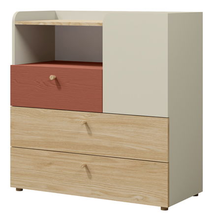 Komód Yoda 10 (világos bézs + olajozott tölgy + korall)