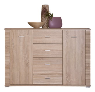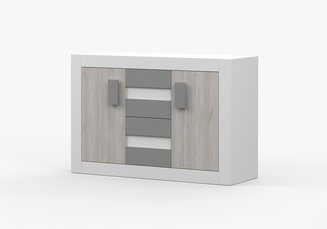 Komód Frija 2 (fehér andersen fenyő + artisan tölgy)