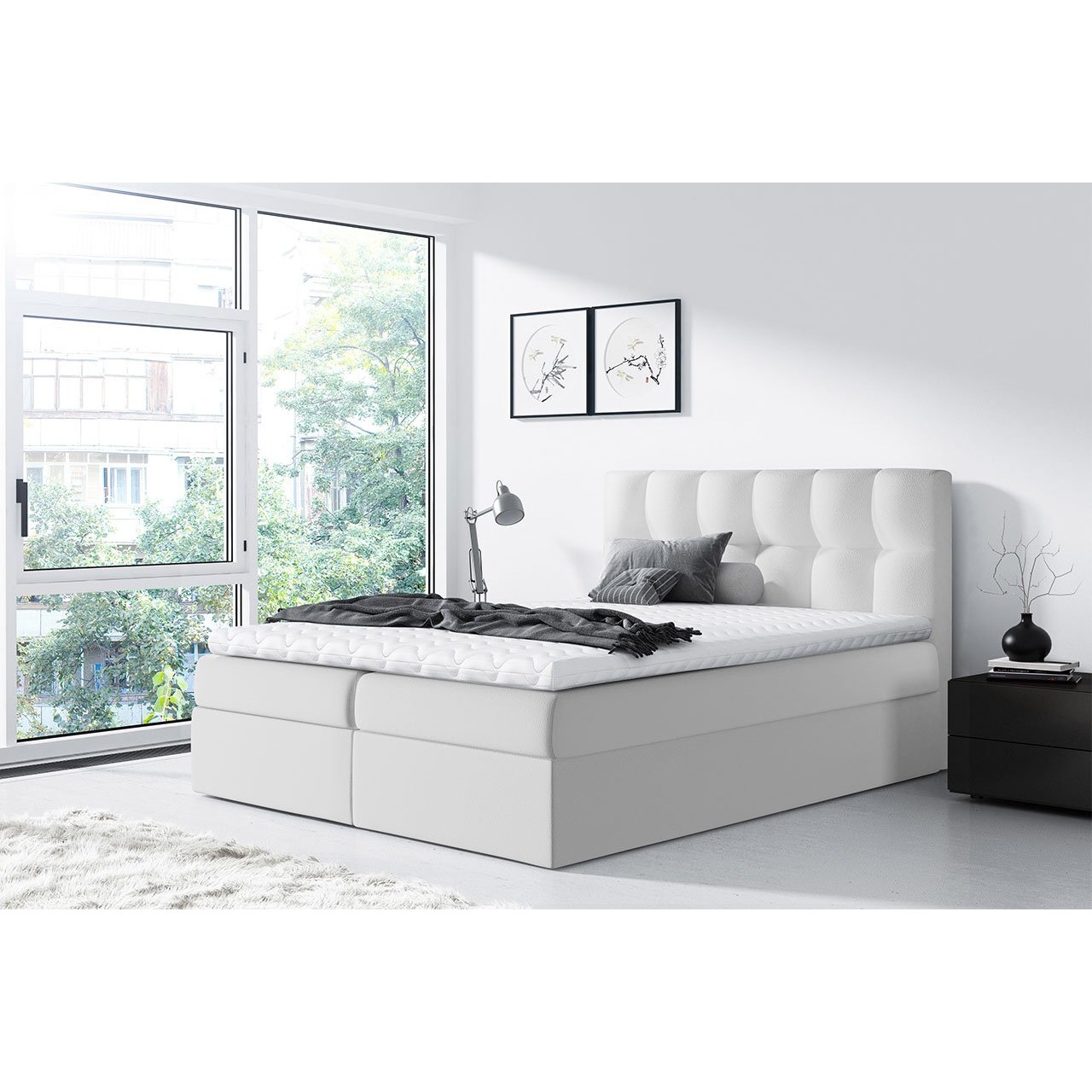 Franciaágy Boxspring Maddox (160x200) (öko-bőr Soft 017 (fehér))