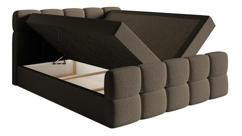 A tökéletes ágyat keresi, amely megfelel a legmagasabb elvárásoknak kényelem, stílus és funkcionalitás tekintetében? Bemutatjuk Önnek a kontinentális ágyat - egy bútordarabot, amely teljes mértékben megfelel az Ön igényeinek. A kontinentális ágy a funkcionalitás és a modern dizájn tökéletes kombinációja, amely eleganciát és stílust kölcsönöz hálószobájának. A kényelmet és az esztétikát szem előtt tartva tervezték, ez az ágy biztosan vonzza a tekintetét. A stílusos fejtámlát úgy tervezték, hogy tökéletesen illeszkedjen az alap lekerekített szögletes formáihoz. Ez a teljes kompozíció eleganciát és harmóniát kölcsönöz az ágynak. A teljes szerkezet kerek formái hangsúlyozzák a bútor modern jellegét, ami igazi belső dekorációvá teszi. A fő jellemzője, amely megkülönbözteti az ágyat, a két ágyneműtartó rekesz, amelyek a rugós emelőknek köszönhetően könnyen nyithatók, így könnyebb, mint valaha, hogy rendben tartsa hálószobáját. Ezek a praktikus tárolóhelyek nemcsak a rend fenntartását szolgálják, hanem a hálószobában is hatékony helykihasználást tesznek lehetővé. Az ágyat kiváló minőségű Bonnell matraccal szállítjuk, amely kiváló gerinctámaszt garantál alvás közben. Ezenkívül az ágy luxus felsőrésszel van felszerelve, amely egyedülálló kényelmet biztosít. A matrac és a fedő ezen kombinációjának köszönhetően minden ágyban töltött éjszaka a relaxáció igazi rituáléjává válik, és nem csak a tökéletes alvást élvezheti, hanem a funkcionalitást és az esztétikát is, felület: 140x200 cm, alvófelület magassága: 53 cm , oldalra nyíló tárolóhelyek az ágynak, automata rugó a tárolóhelyek egyszerű kinyitásához, beleértve a Bonnell rugókból készült főmatracot, a fedővel együtt, magassága 5 cm. Ágykeménység: H2 /H3. Barna színű Legend 07 szövettel kárpitozott bútor. A Legend abszolút legenda a textilvilágban. Egyedülálló tulajdonságai rendkívül kívánatossá teszik a fényűző felületek és minőségi anyagok szerelmesei körében. Boucle szövetből készült, amelynek jellegzetes szerkezete finom hurkákra emlékeztet. Ezek a hurkok egyedi megjelenést és finom árnyalatok adnak egyedi karaktert az anyagnak. A Legend szövet vastag szövése garantálja annak kivételes tartósságát és ellenálló képességét a mindennapi használat során. Ennek köszönhetően biztos lehet benne, hogy az anyag intenzív használat mellett is hosszú évekig megőrzi gyönyörű megjelenését. A modell 140 cm, 160 cm és 180 cm szélességben kapható.