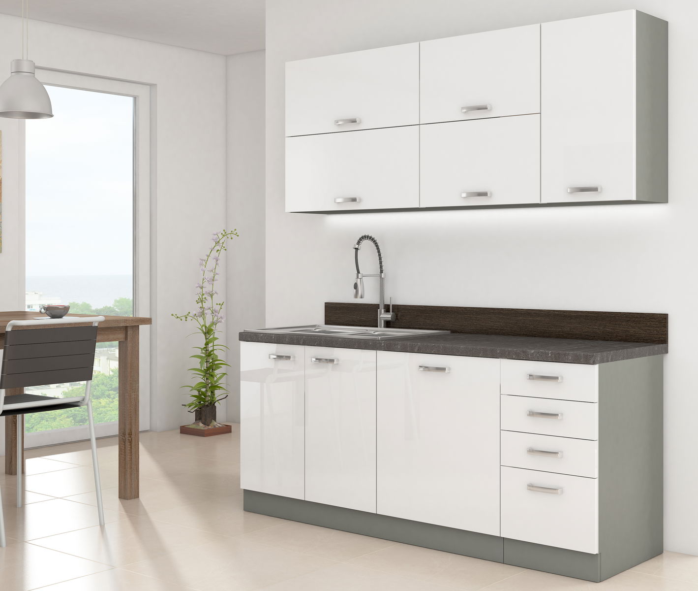 - Konyha Brunea 180 cm (szürke + fényes fehér)