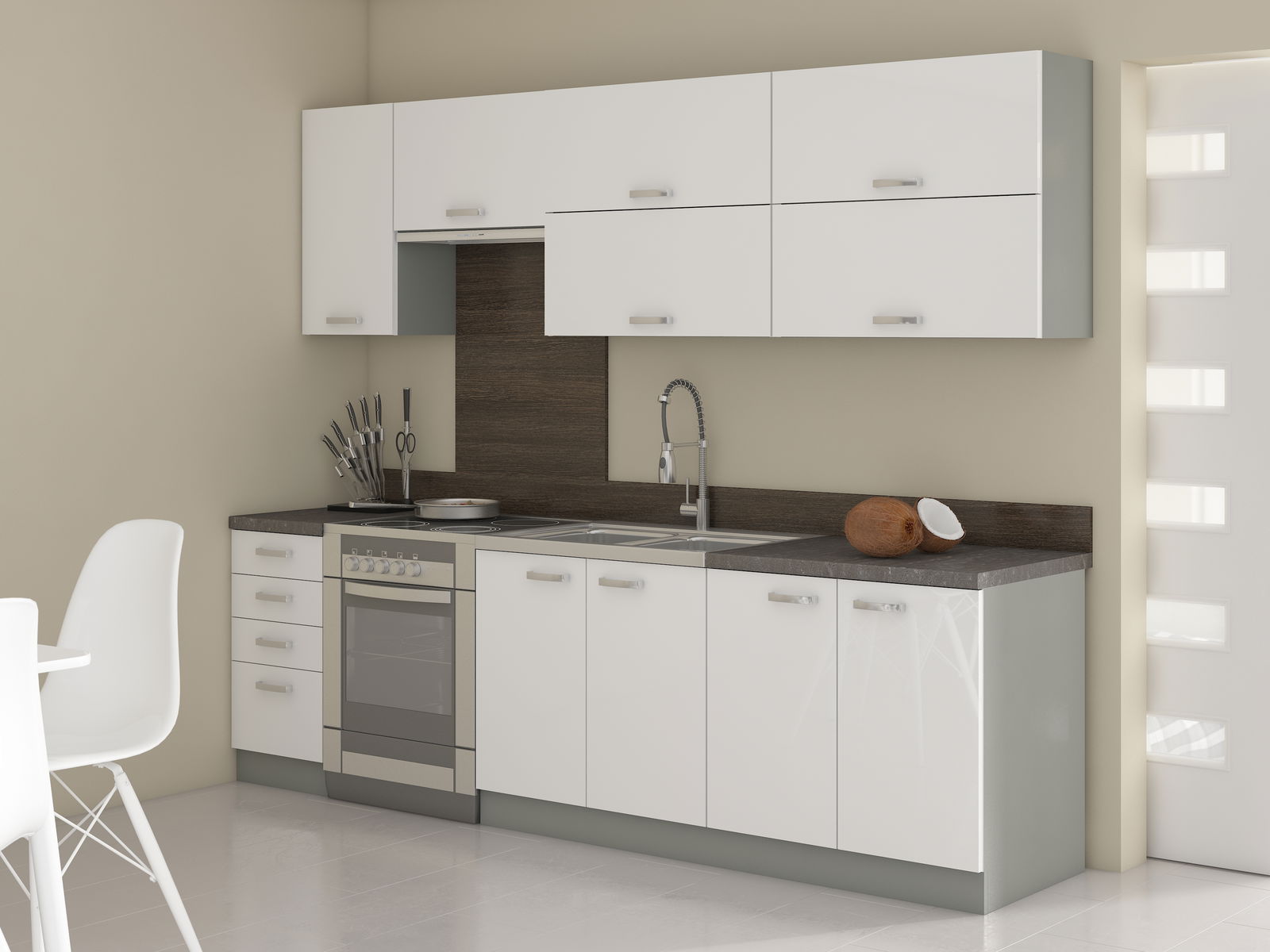 - Konyha Brunea 260 cm (szürke + fényes fehér)