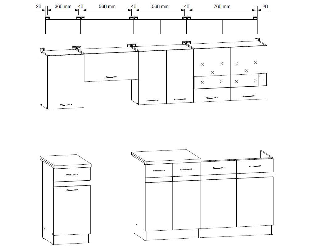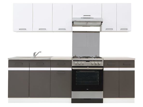 Konyha Julian 240 cm fényes fehér + wolfram szürke