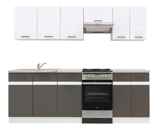 Konyha Junona line 230 cm (fehér fényes + szürke volfrám + fehér)