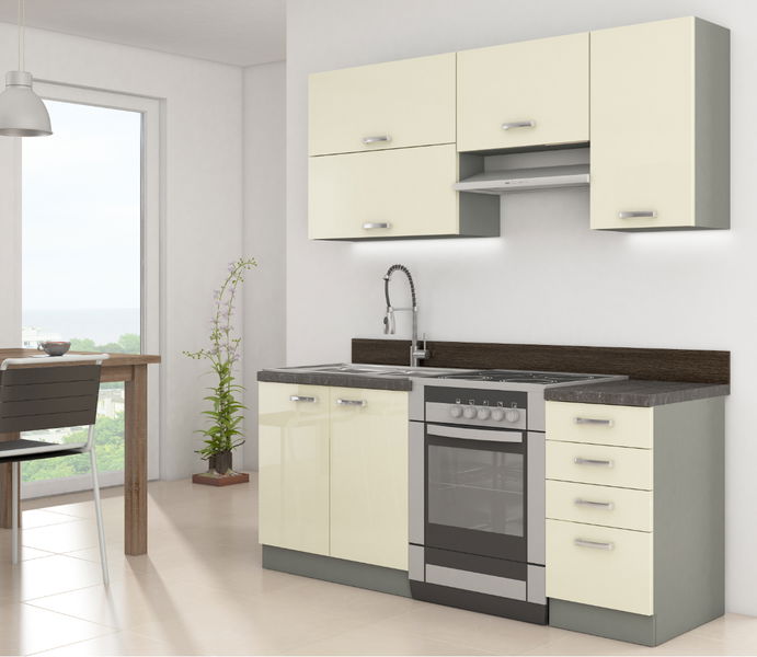 Konyha Kelyn 180 cm (szürke + fényes krém)