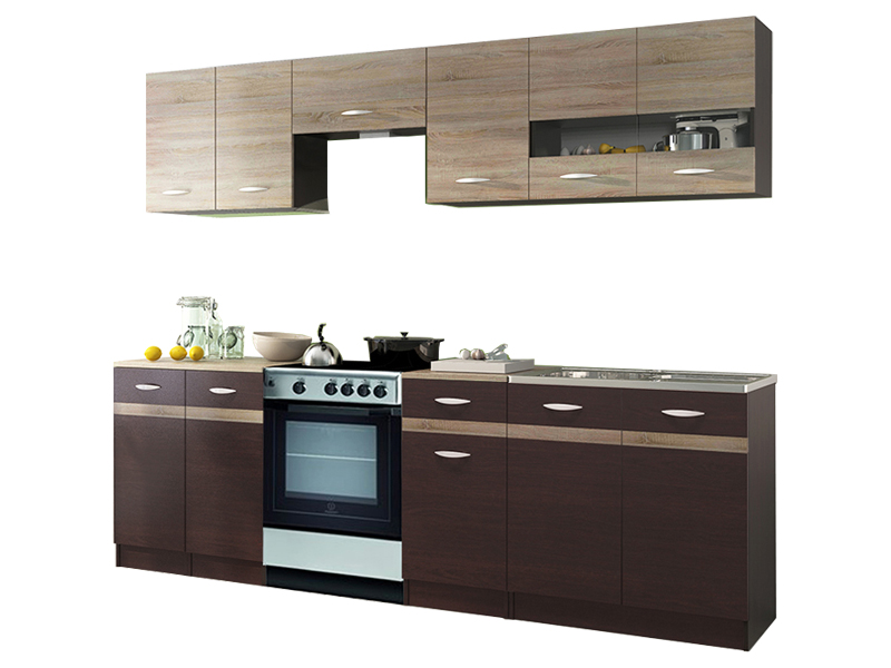 Konyha Lenna 240 cm Sonoma tölgy sötét + Sonoma tölgy világos