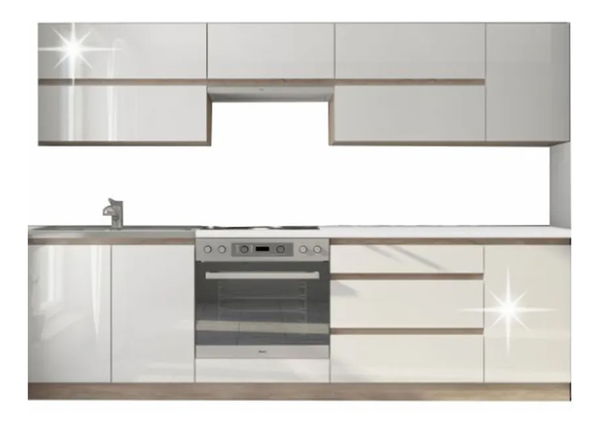 Konyhabútor 260 cm Lina (sonoma tölgy + magasfényű fehér)