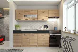 A 180 cm vagy 240-260 cm hosszú egyenes konyhablokkok kisebb helyekre alkalmasak. Az egyszerű és kompakt kialakítás hatékonyan kihasználja a korlátozott helyet. Az összes munkazóna egy síkban történő elhelyezése minimálisra csökkenti az egyes részek közötti mozgás szükségességét, ami hatékonyabbá teszi a munkát. Az egyenes vonal több helyet hagy a konyhában, és így szellős és nyitott teret teremt.