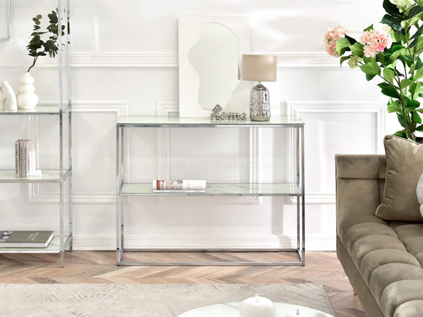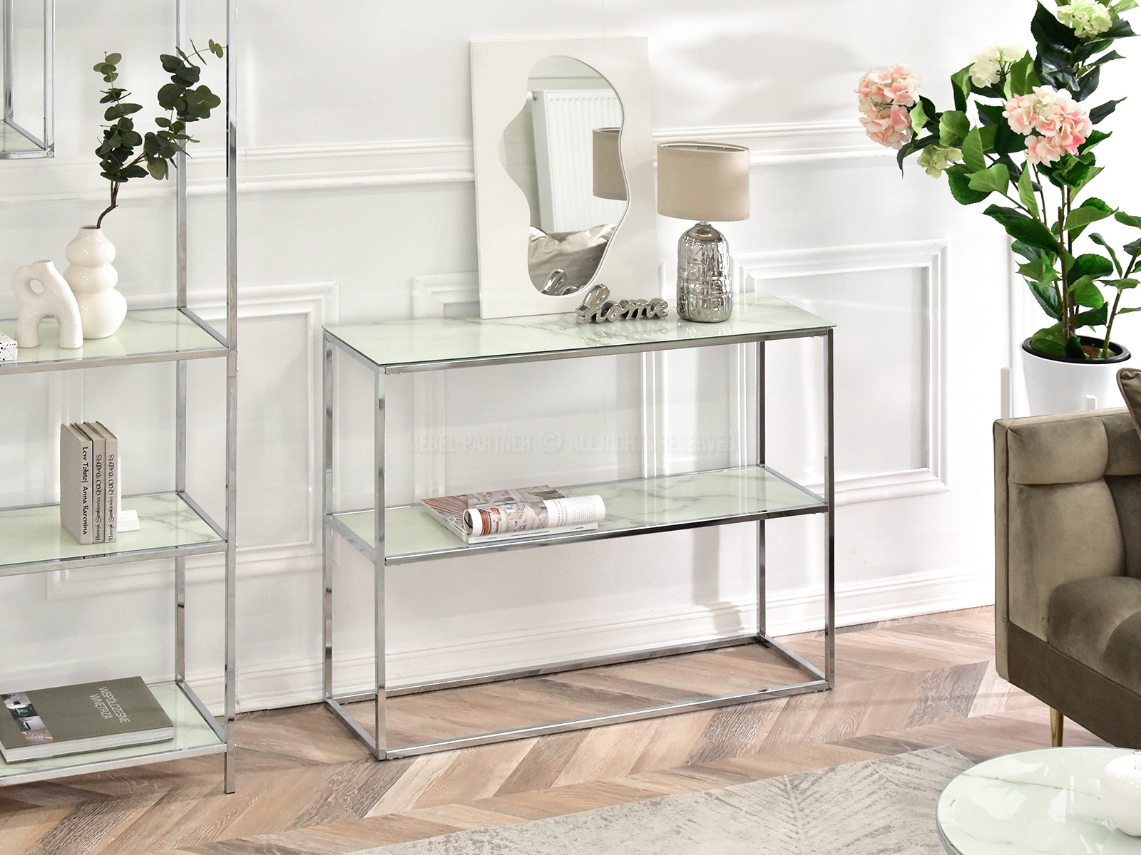 Konzolasztal Bella Kons Bis (fehér márvány + króm)