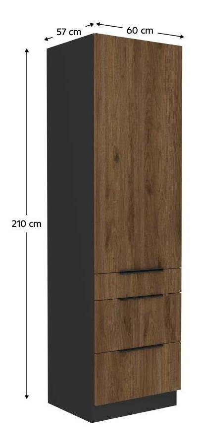 Magas konyhaszekrény Monzesa 60 D db 210 3S1F (okapi dió + fekete)