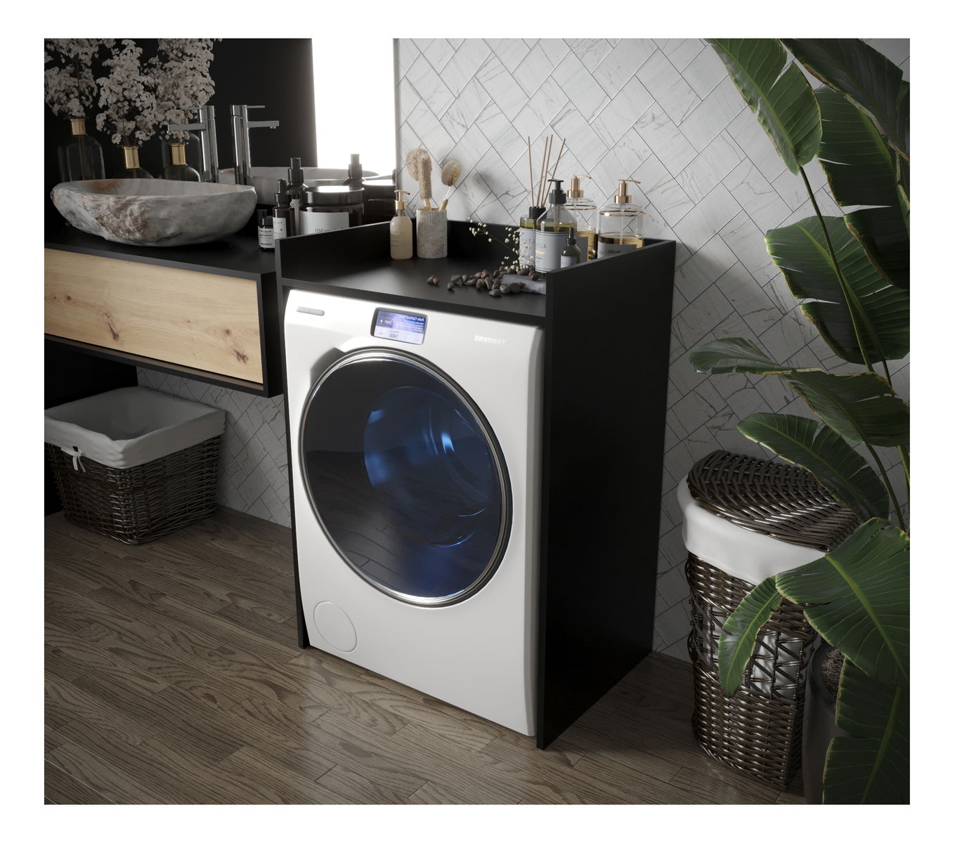 Mosógép szekrény Ottilia (matt fekete)
