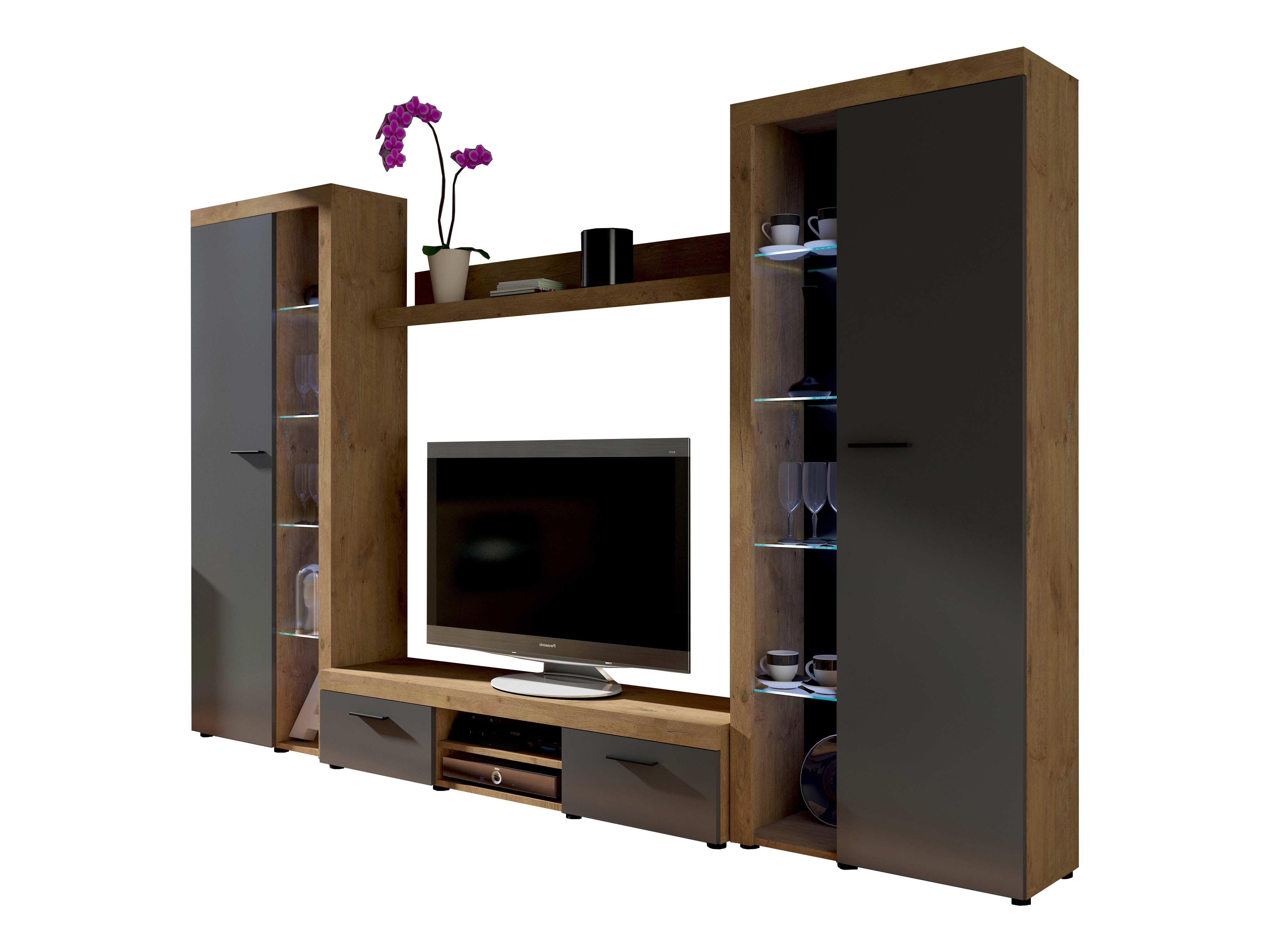 Nappali bútorsor Rudby XL (lefkas tölgy + grafit) (világítás nélkül) *kiárusítás