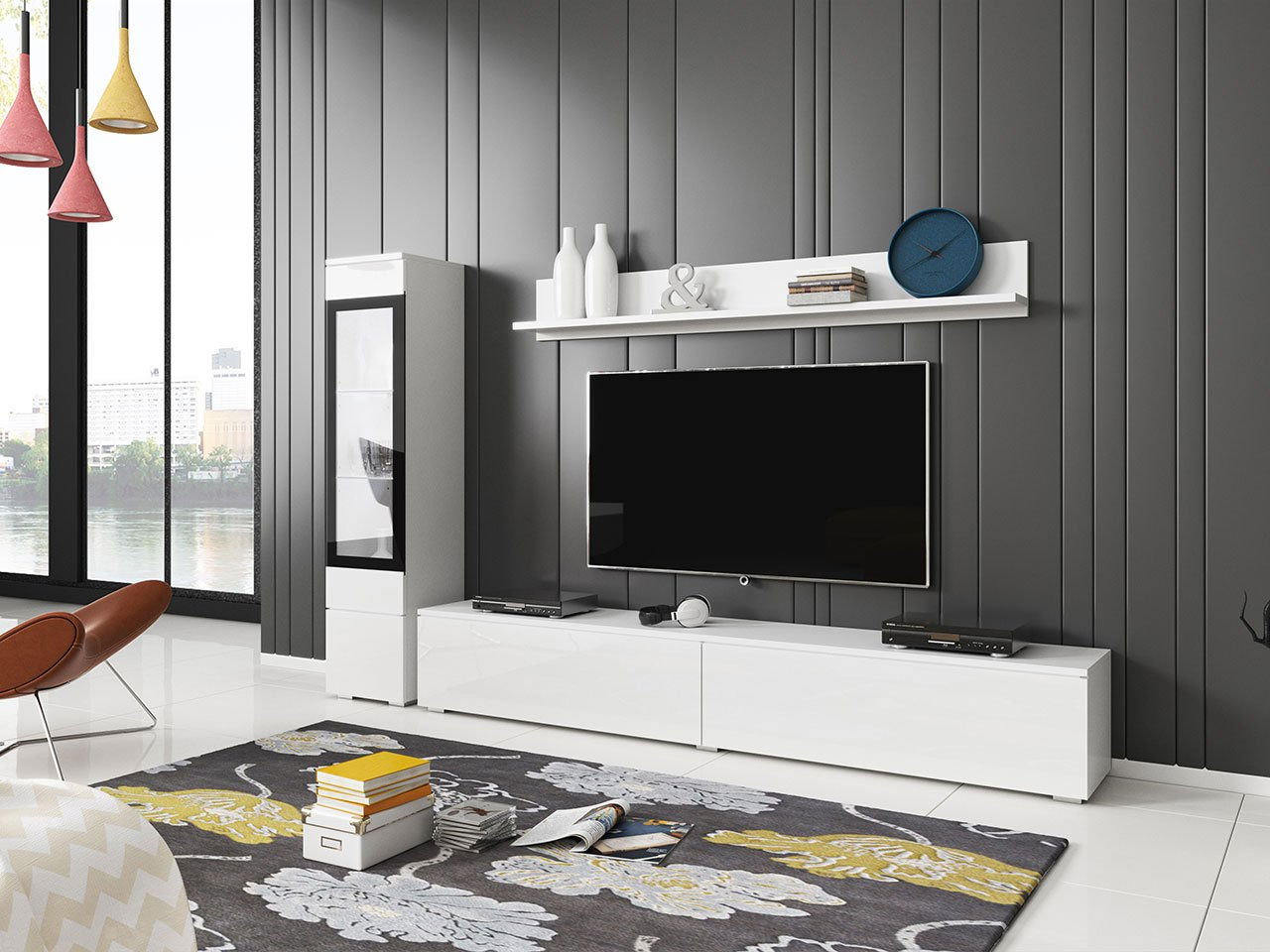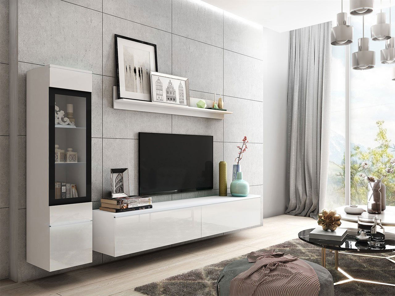 Nappali bútor Selwyn I (fehér + fényes fehér) (világítás nélkül)