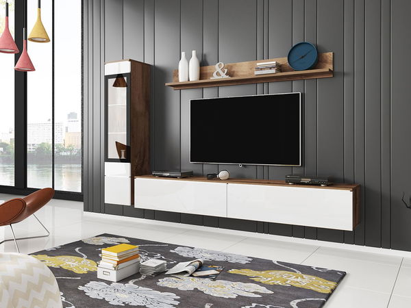 Nappali bútor Selwyn I (wotan + fényes fehér)(fehér LED világítás)