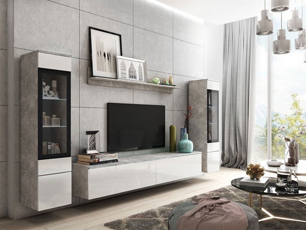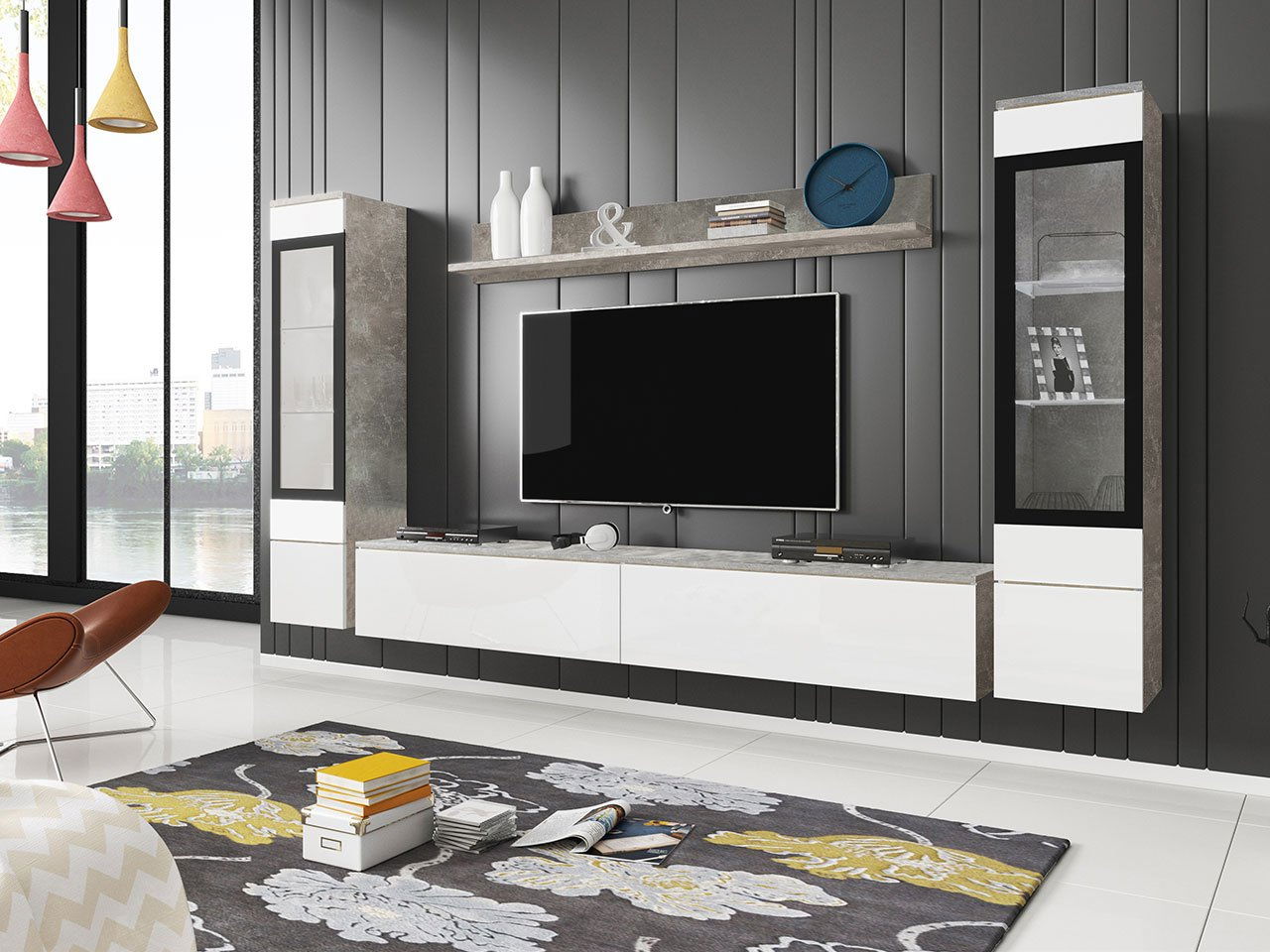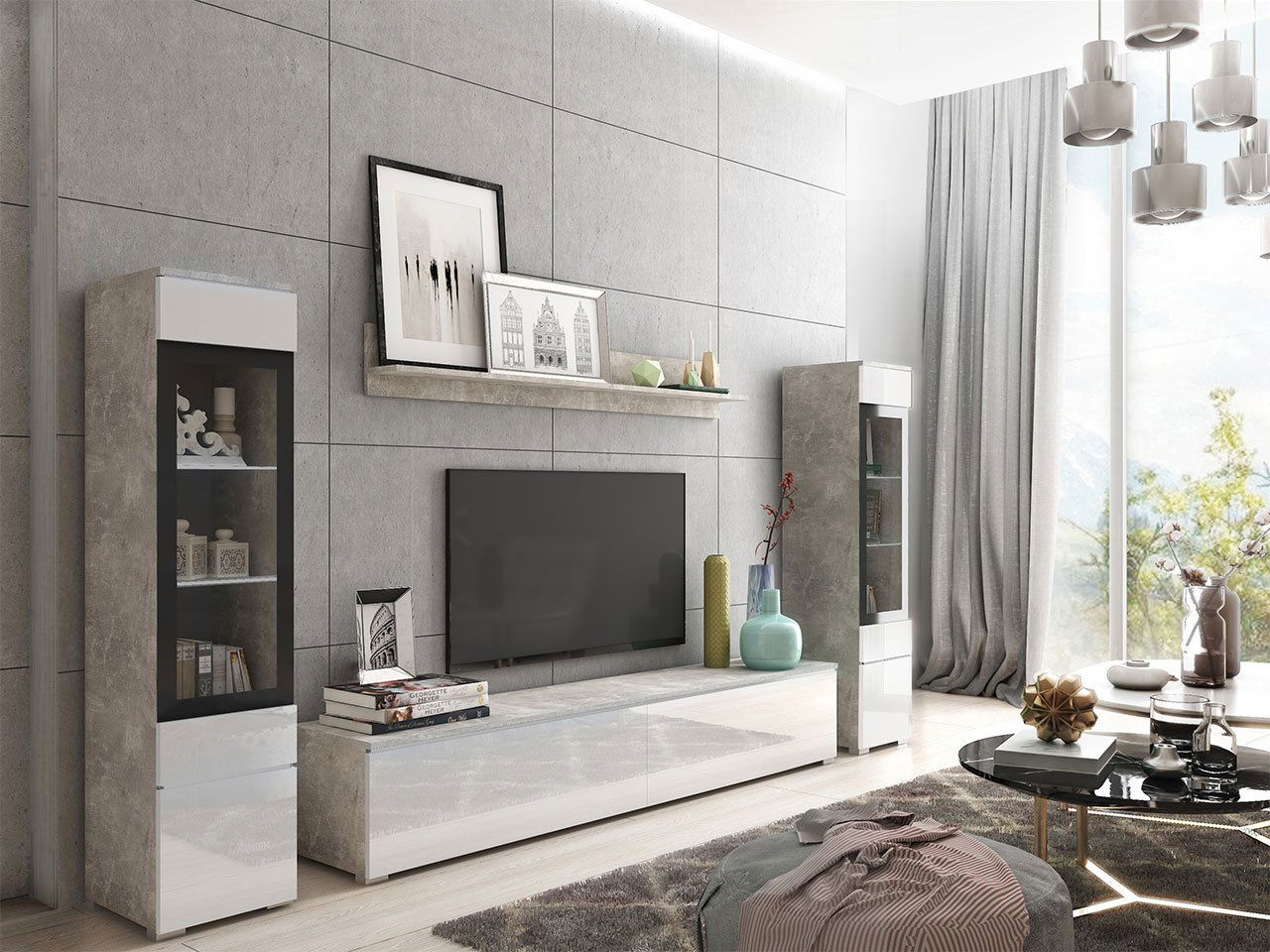 Nappali bútor Selwyn II (beton + fényes fehér) (világítás nélkül)