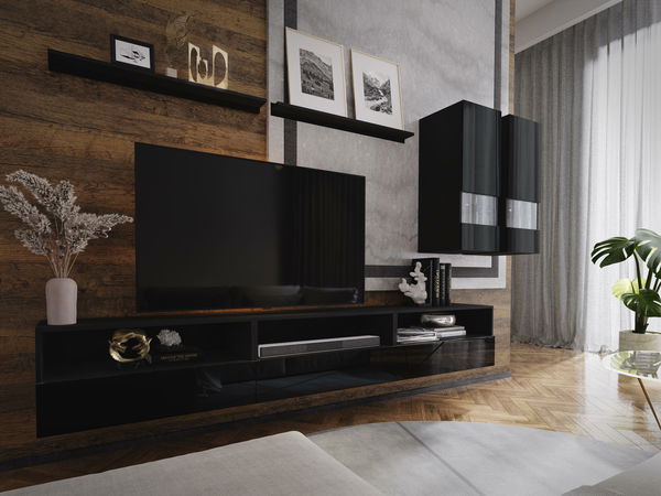 Nappali bútorsor Berny 24 (fekete + fényes fekete)
