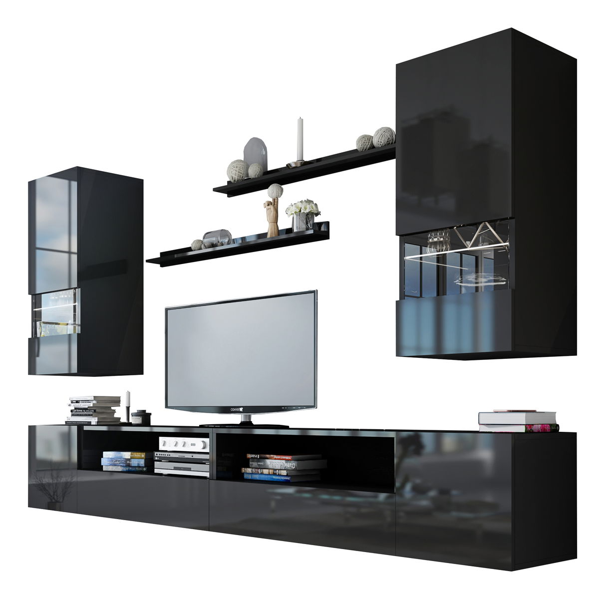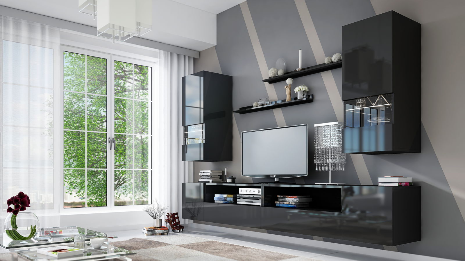 Nappali bútorsor Berny 41 (fekete + fényes fekete)