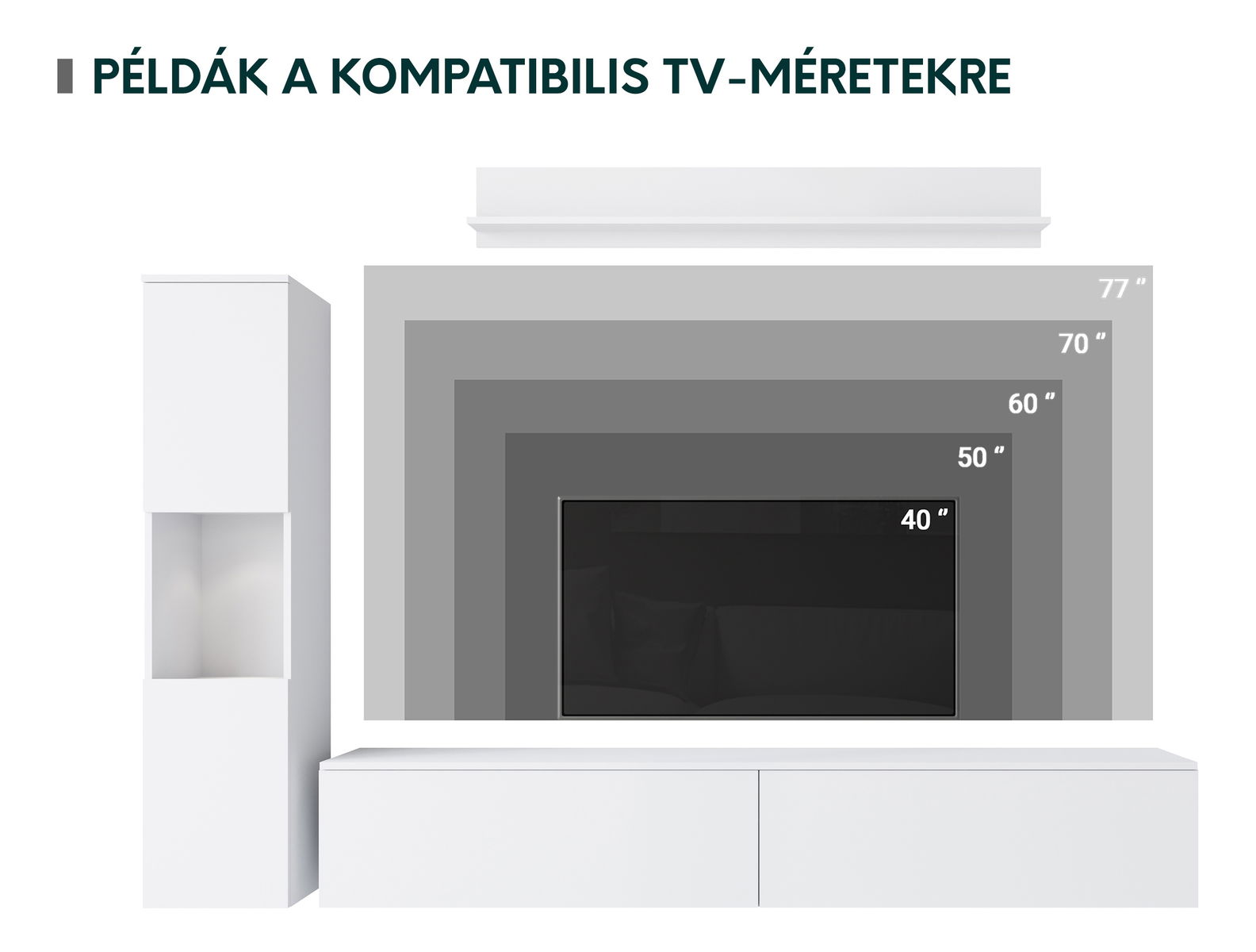 Nappali bútorsor Nova BR (fehér + fényes fehér) (fehér LED világítás)