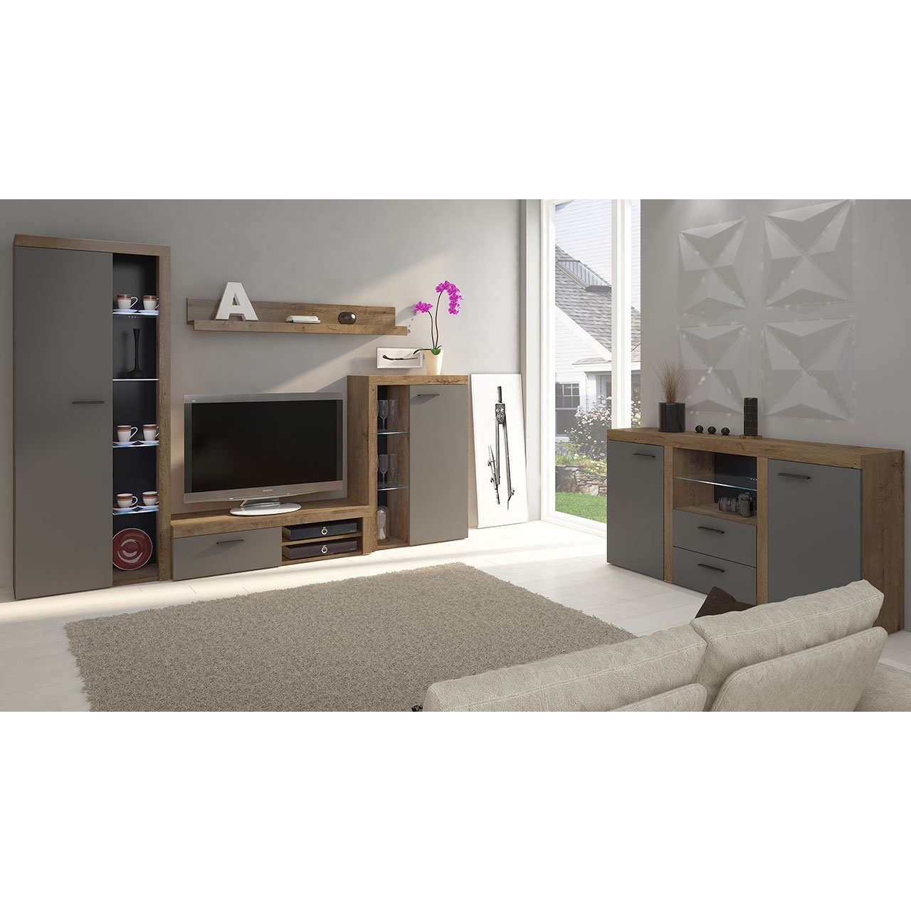 Nappali bútorsor Rokara (komóddal) (lefkas tölgy + grafit) (világítás nélkül)