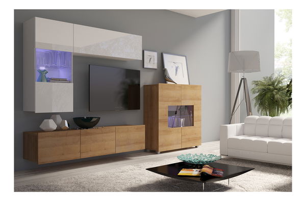 Nappali fal Calabria C3 (fehér + arany tölgy) (világítás nélkül)