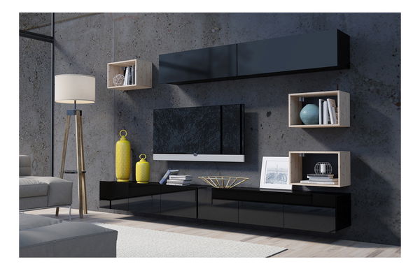 Nappali fal Calabria C31 BLACK (fekete + artisan tölgy) (világítás nélkül)