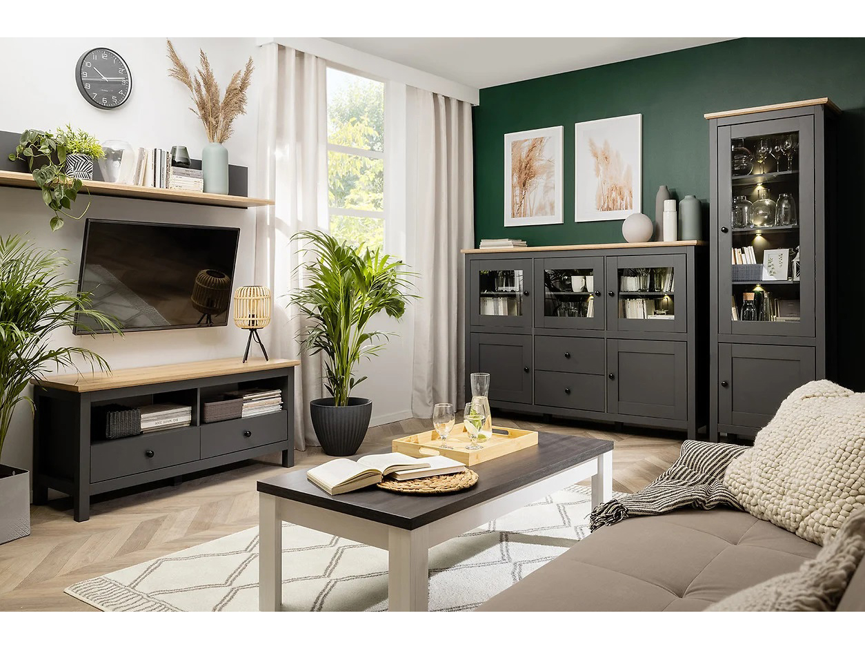 Nappali fal Hesen (LED világítással) (grafit + artisan tölgy)