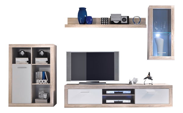 Nappali fal LED világítással Belina (szonoma tölgy + fehér)