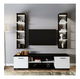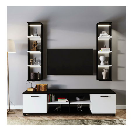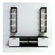 Vastagság: 18 mm. Fali polc méretei: Szélesség: 30 cm. Magasság: 120 cm. (2 db.) TV asztal méretei: Szélesség: 180 cm. Magasság: 55 cm. Mélység: 40 cm. Polc magassága: 20 cm. Lábak magassága: 5 cm