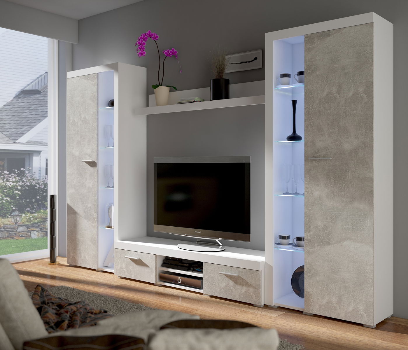 Nappali fal Rudby (fehér + beton) (világítás nélkül) *bazár
