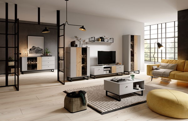 A Galaxit nappali stílusos és ötletes. Rengeteg tárolóhelyet biztosít. A platinaszürke és a natúr artisan tölgyfa kombinációjának köszönhetően egyedi hangulatot teremt.