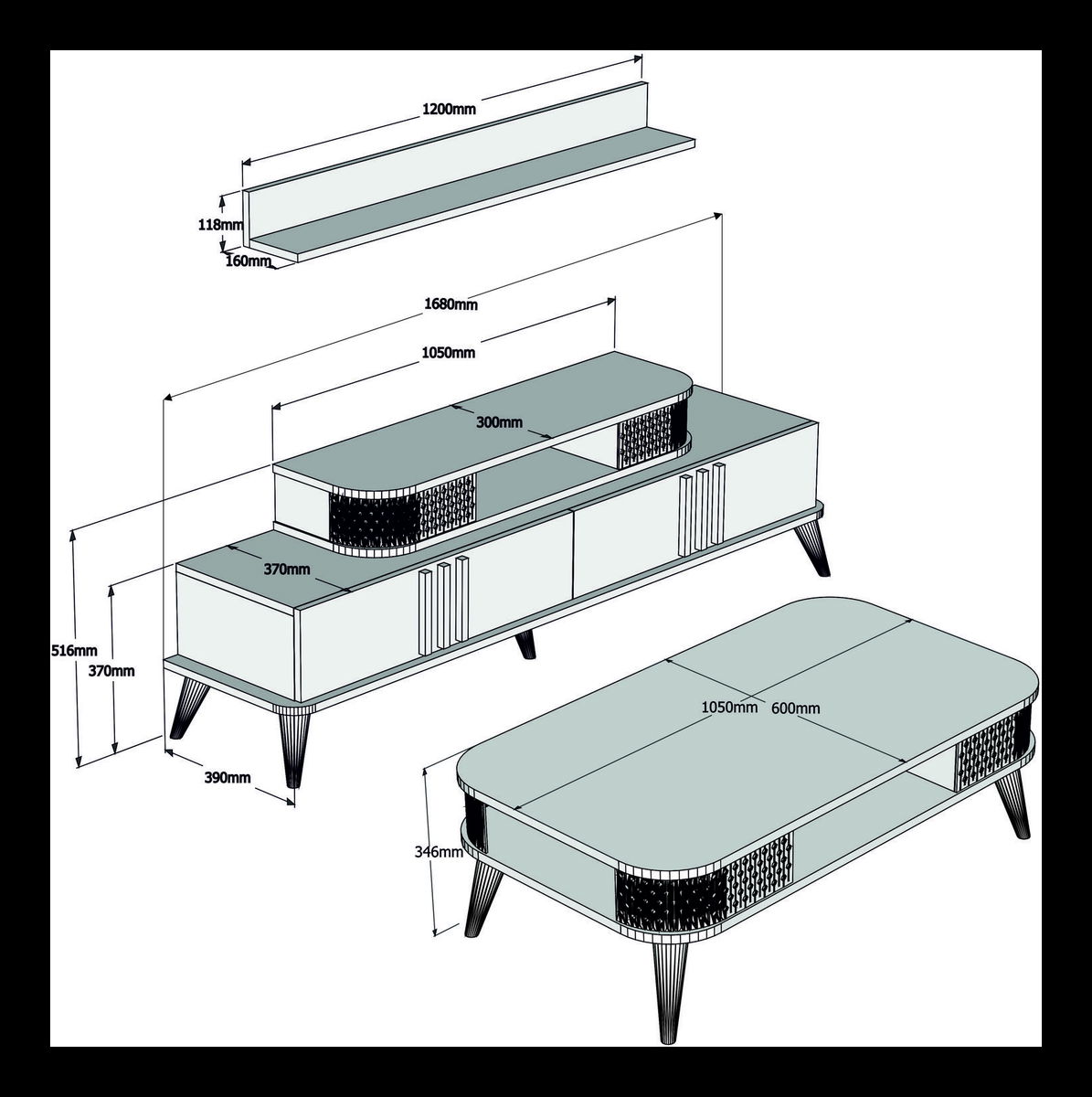 TV polc méretei: szélesség: 105 cm magasság: 14,6 cm mélység : 30 cm< br>fali polc méretei: szélesség: 120 cm magasság: 11,8 cm mélység: 16 cm