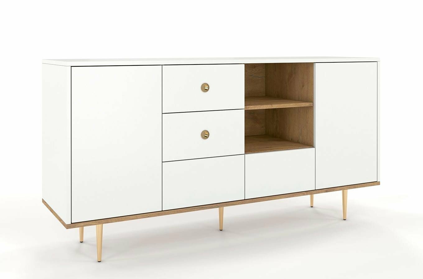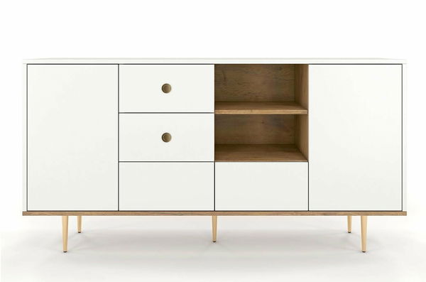 MutasdExtrémen praktikus Harmy komód. Több részre van osztva, így rengeteg tárolóhelyet biztosít. A komód közepén négy fiók található. Bár kettő közülük díszes fogantyúval rendelkezik, mindegyik a "push to open" rendszerrel nyílik. Csendes záródási funkcióval is rendelkeznek. A komód két polccal is fel van szerelve a dekorációs tárgyak vagy könyvek számára.