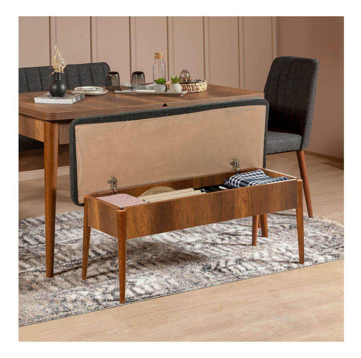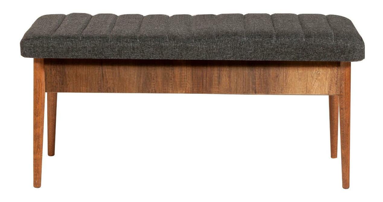 Vastagság: 18 mm. Gyertyán lábak. Pad méretei: Szélesség: 110 cm. Magasság: 48 cm. Mélység: 40 cm. Tárolóhely méretei: Szélesség: 95 cm. Magasság: 12 cm. Mélység: 27 cm. Ülőmagasság: 48 cm
