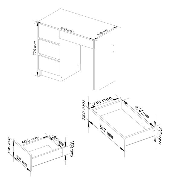 PC asztal Alineadas (fehér + grafit)