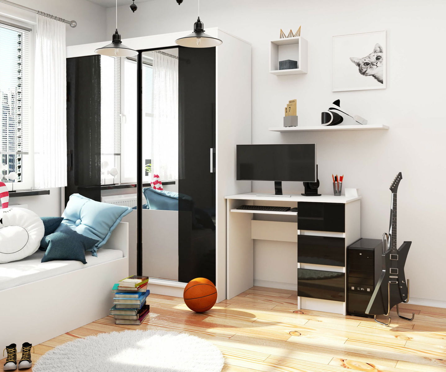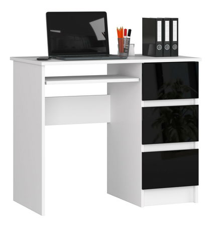 PC asztal Benicio (fehér + fényes fekete) (J)