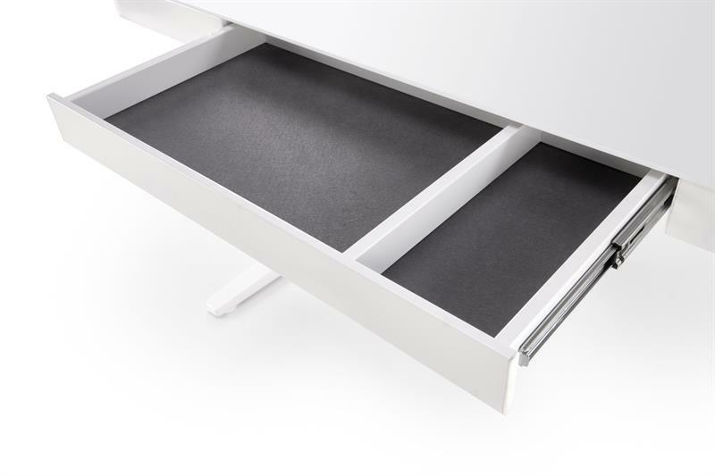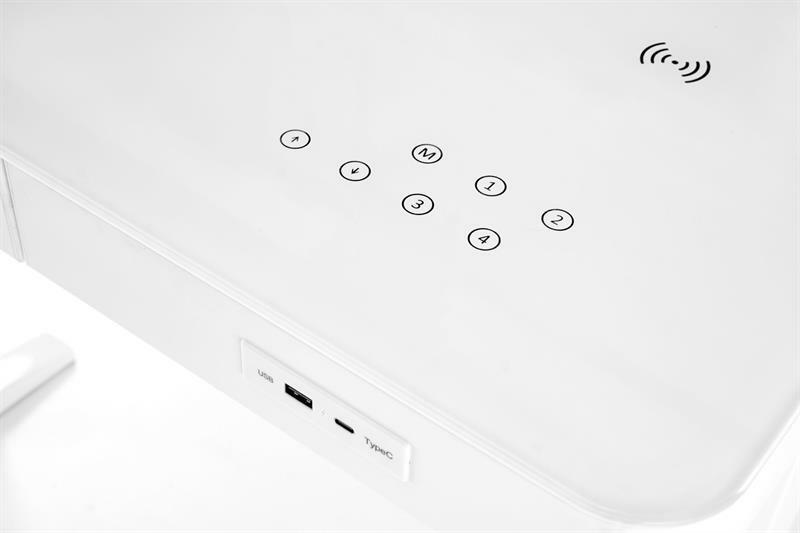 Ez a modern PC-asztal elegáns kialakításával és praktikus funkcióival tűnik ki, amelyek javítják a munkakörnyezetet. Az asztal magassága 77-120 cm között állítható, ami rugalmas használatot tesz lehetővé ülve vagy állva. Porszórt acélból készült, üveg munkalappal rendelkezik, amely modern és stílusos megjelenést kölcsönöz az asztalnak. A magasságszabályzó érintésérzékeny, és a jobb oldalon található, ami garantálja a könnyű használatot. Az íróasztal egy központi fiókkal rendelkezik, amely irodaszerek vagy dokumentumok tárolására szolgál. Kicsúsztatható billentyűzettálcával ugyan nincs, de USB porttal van ellátva, ami megkönnyíti az elektronikus eszközök csatlakoztatását. Ez az asztal ideális modern irodákba vagy háztartásokba, amelyek stílusos és funkcionális megoldást keresnek munkaterületükhöz.