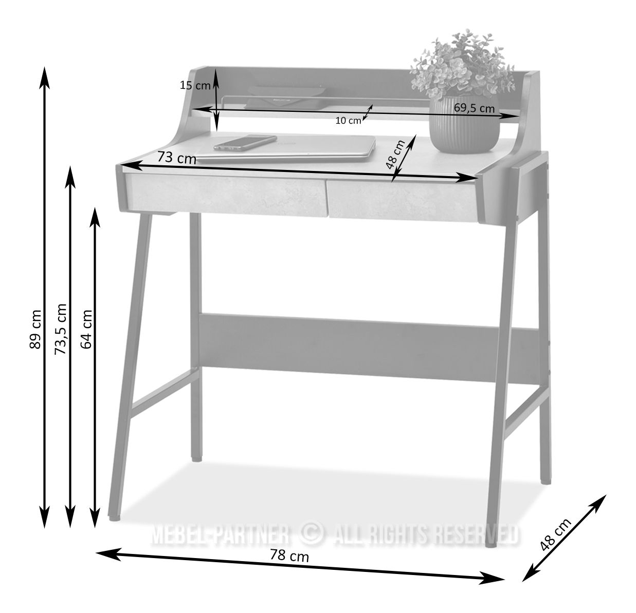 téglalap alakú bútorlap, felső polccal, fiókokkal